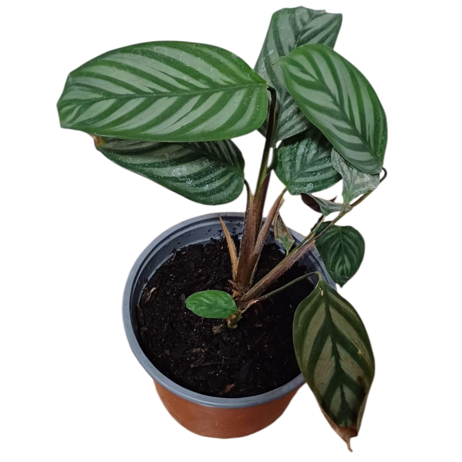 Sumérgete en la belleza de esta Calathea Ctenanthe Setosa, una planta exótica y resistente. Con hojas de rayas verdes y blancas, esta planta traerá un toque de naturaleza a cualquier espacio. Además, su fácil cuidado la hace perfecta para aquellos que desean tener un jardín interior sin mucho esfuerzo.