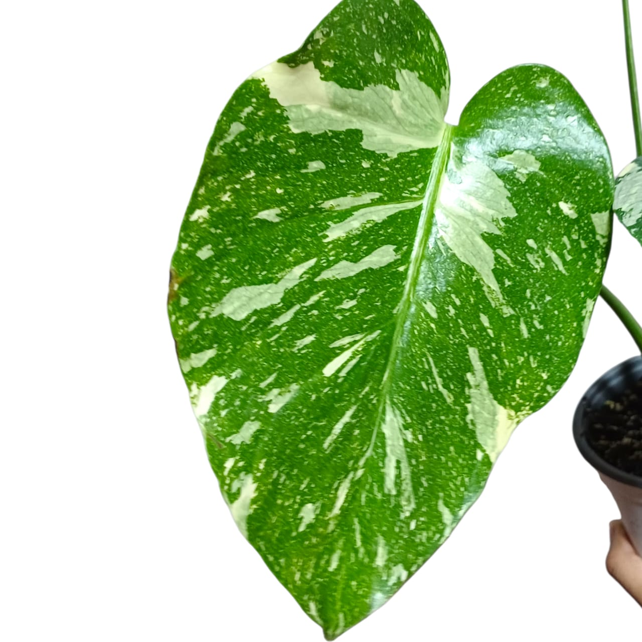 Monstera Deliciosa Thai Constellation es una variedad variegada excepcional, distinguida por su follaje salpicado de crema y blanco sobre hojas verde profundo. Esta planta trepadora tropical desarrolla las características fenestraciones conforme madura, creando una estética arquitectónica perfecta para espacios contemporáneos. Destaca por su vigoroso crecimiento y prospera bajo luz indirecta brillante en suelos bien drenados. La variedad Thai Constellation es una pieza de declaración que captura la atención, ofreciendo tanto dramatismo visual como propiedades purificadoras del aire. Ideal para coleccionistas y entusiastas de plantas que buscan elevar su colección botánica.