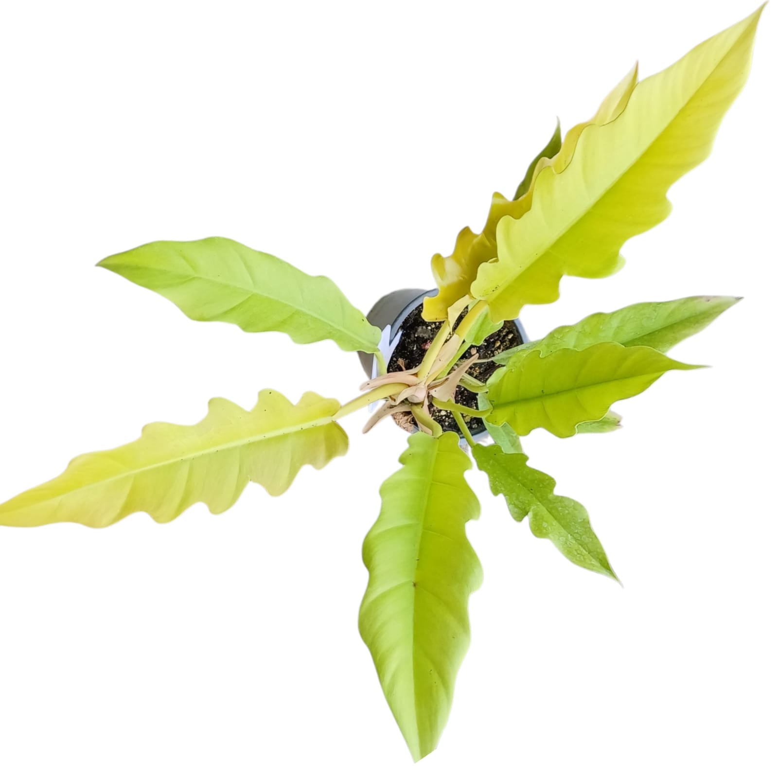El Philodendron Ring of Fire Golden es una variedad híbrida de espectacular belleza cromática, distinguida por su follaje que exhibe una paleta dinámica de naranjas ardientes, dorados luminosos y rojos intensos en las hojas nuevas, transicionando hacia verdes profundos con vetas doradas en la madurez. Esta planta trepadora de crecimiento vigoroso requiere luz indirecta brillante para potenciar su coloración característica. Prefiere sustratos bien estructurados y drenantes con riego regular que mantenga la humedad sin encharcamiento. Su naturaleza epífita la posiciona como opción privilegiada para soportes verticales donde despliega follaje más exuberante y colorido. Demanda temperaturas cálidas y humedad moderada a elevada. Una adquisición excepcional para coleccionistas que buscan impacto visual y sofisticación botánica en sus espacios interiores.